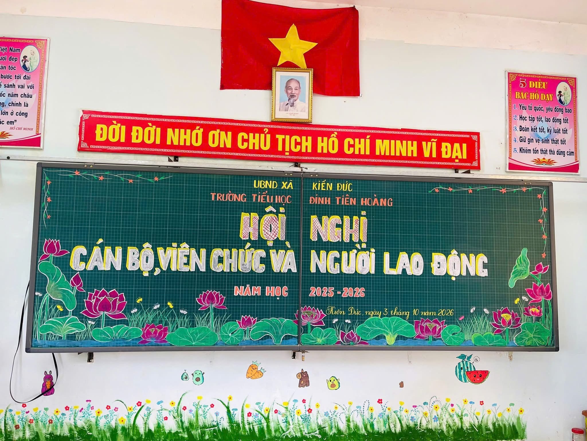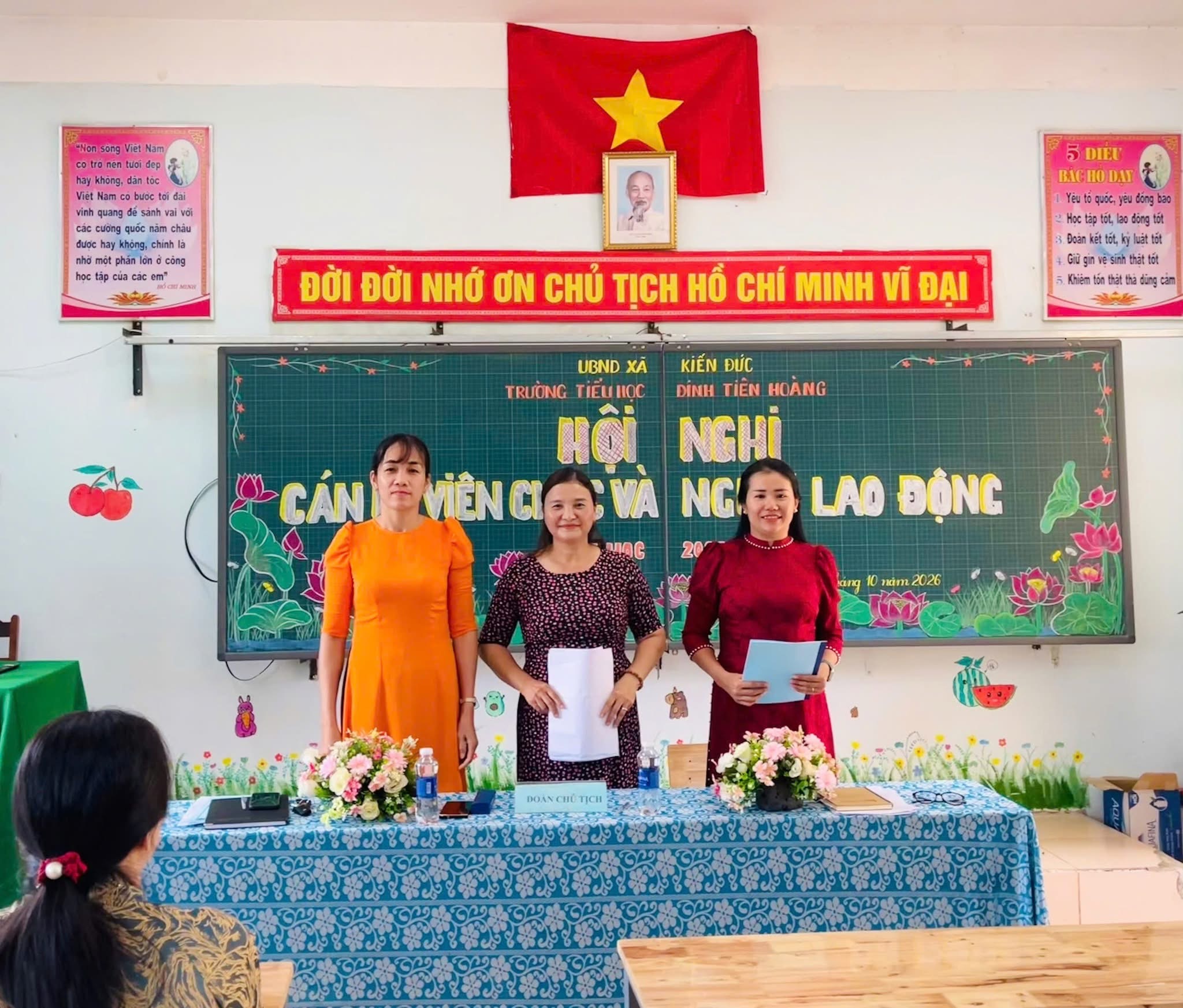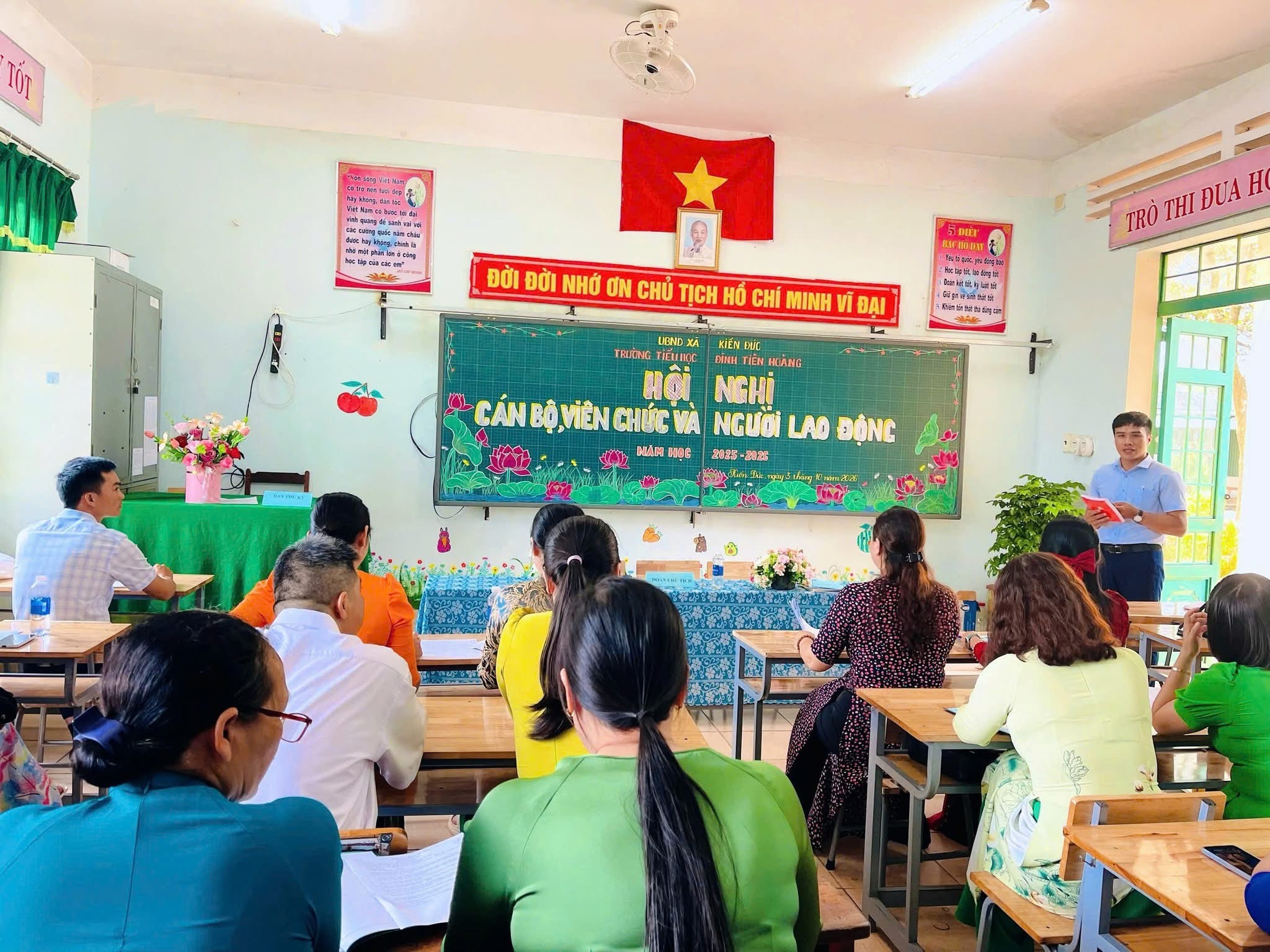 Chiều ngày 03/10/2025, Trường Tiểu học Đinh Tiên Hoàng đã long trọng tổ chức Hội nghị Cán bộ, viên chức, người lao động năm học 2025-2026. Hội nghị là diễn đàn quan trọng để tập thể nhà trường đánh giá toàn diện kết quả của năm học 2024-2025, đồng thời đề ra phương hướng, nhiệm vụ và giải pháp trọng tâm cho năm học mới.