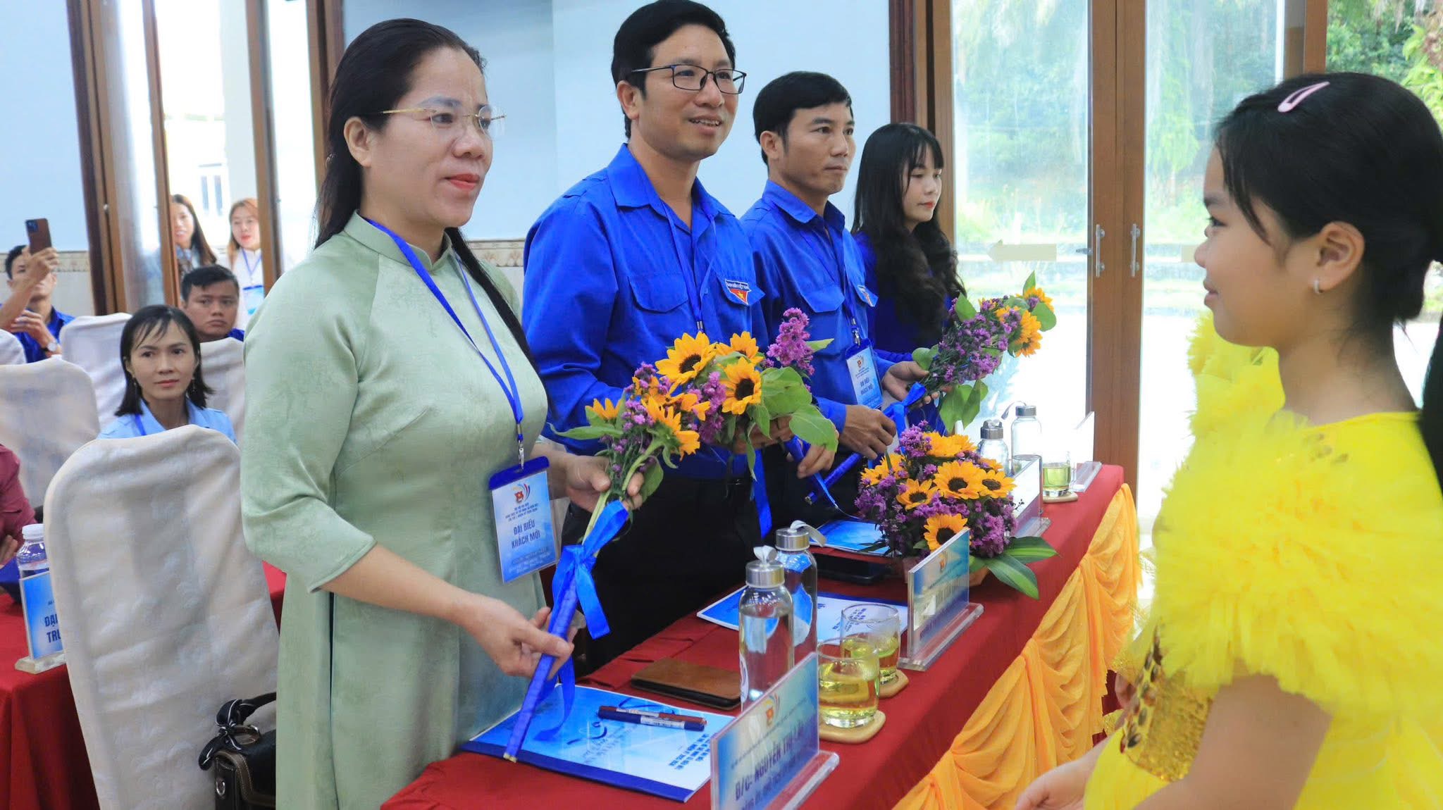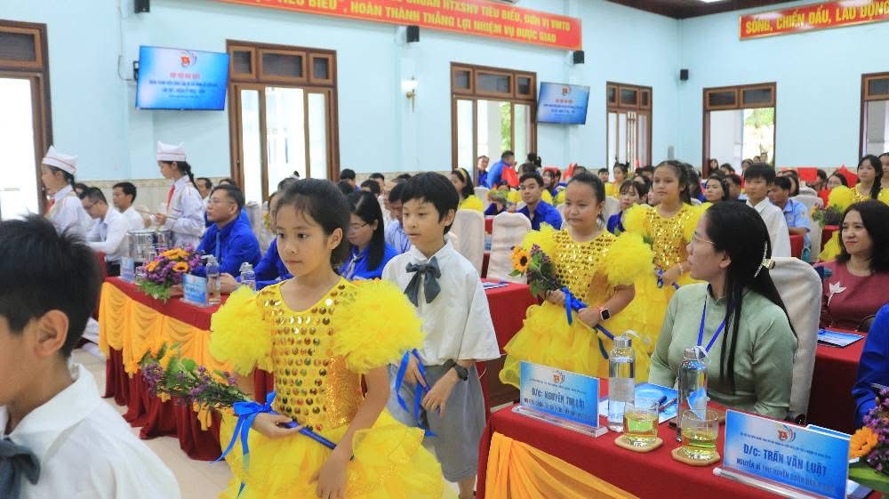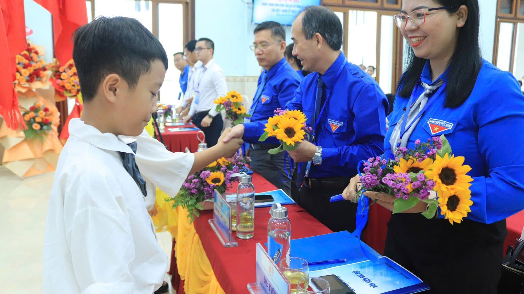 Bên cạnh đó, đại diện học sinh Trường Tiểu học Đinh Tiên Hoàng còn tham gia dâng hoa chúc mừng Đại hội, thể hiện tình cảm trân trọng, tấm lòng tri ân và niềm tin yêu vào tổ chức Đoàn – lực lượng xung kích của thanh niên Việt Nam.