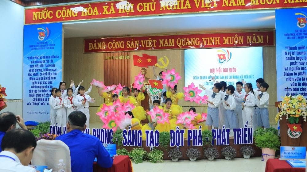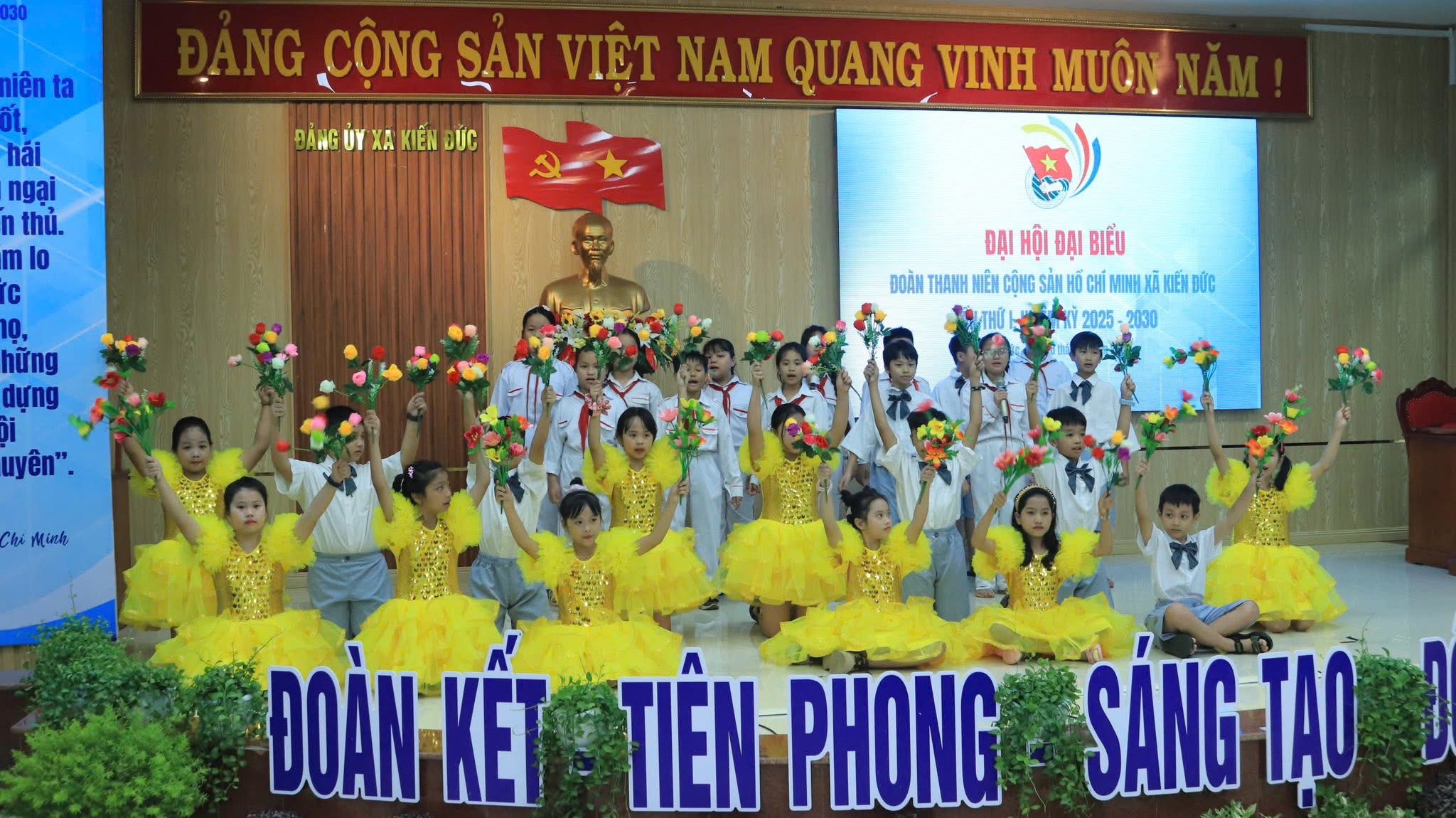 Hòa trong không khí hân hoan của tuổi trẻ cả nước hướng về Đại hội Đại biểu Đoàn TNCS Hồ Chí Minh xã Kiến Đức lần thứ I, nhiệm kỳ 2025 – 2030, học sinh Trường Tiểu học Đinh Tiên Hoàng đã vinh dự tham gia chương trình văn nghệ và dâng hoa chúc mừng Đại hội.